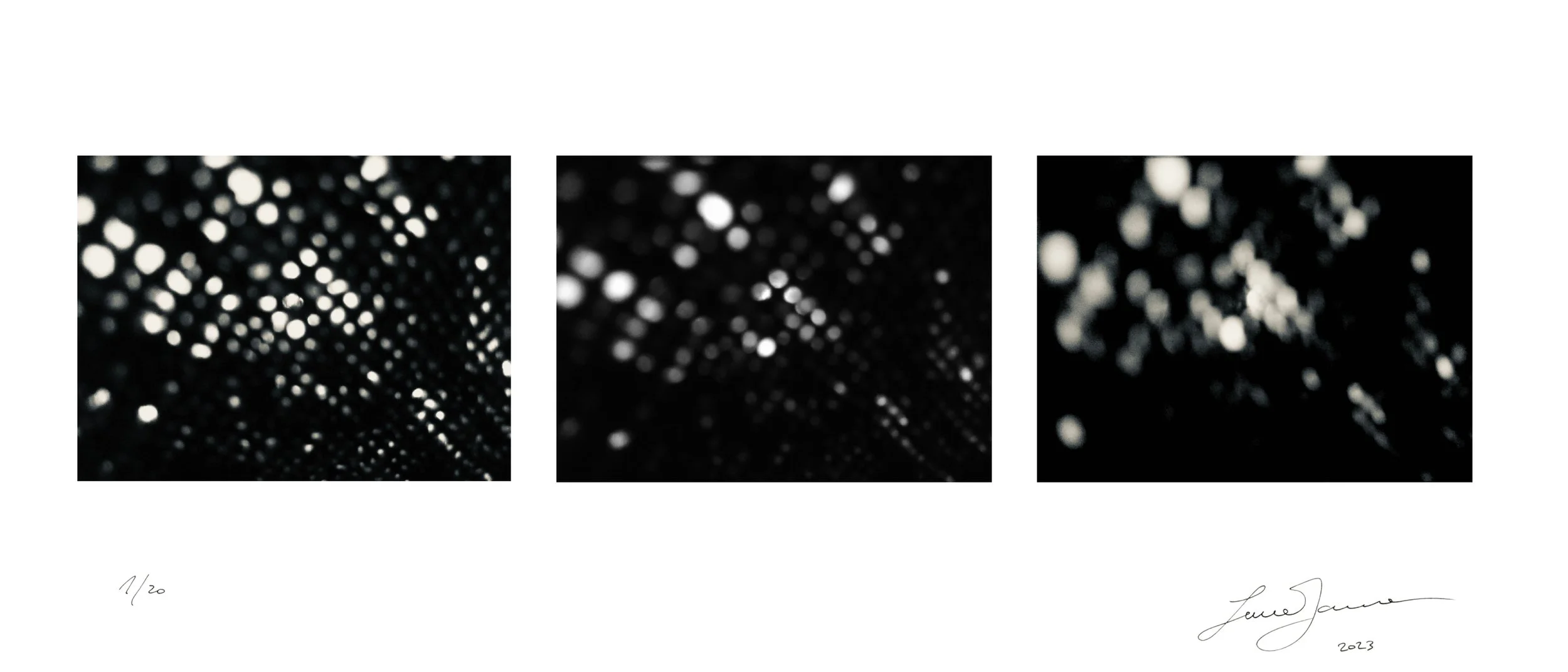 Sous le voile délicat de l'objectif, l'univers photographique de l’artiste dévoile ses mystères. Un travail sur le micro et le macro, deux mondes complémentaires qui dialoguent, en créant une photographie abstraite.